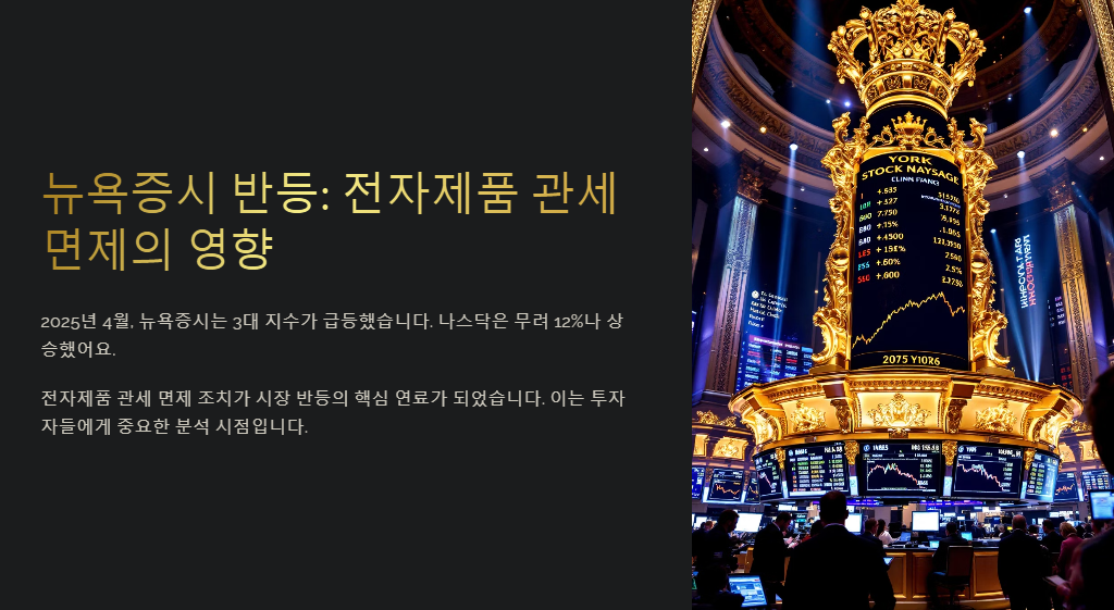 안녕하세요, 투자자 여러분. 최근 뉴욕증시가 눈에 띄게 반등하면서 많은 투자자들이 "무슨 이슈 있었나?" 하고 주목했죠. 저도 퇴근길에 주식앱 켜보고 깜짝 놀랐거든요. 그런데 다음날 뉴스에 뜬 ‘전자제품 관세 면제’ 기사 보셨나요? 처음엔 별 영향 없을 줄 알았는데, 막상 시장 반응은 다르게 흘러갔어요. 오늘은 이 반등의 배경, 특히 무역정책 변화가 어떻게 시장에 영향을 미쳤는지 이야기해보려 합니다.