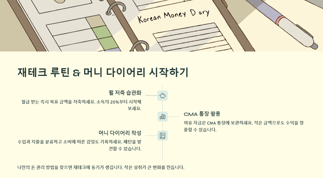 CMA, 적금, ETF 같은 저위험 상품부터 시작하는 걸 추천해요. 금액보다 ‘꾸준함’이 더 중요하니까요.