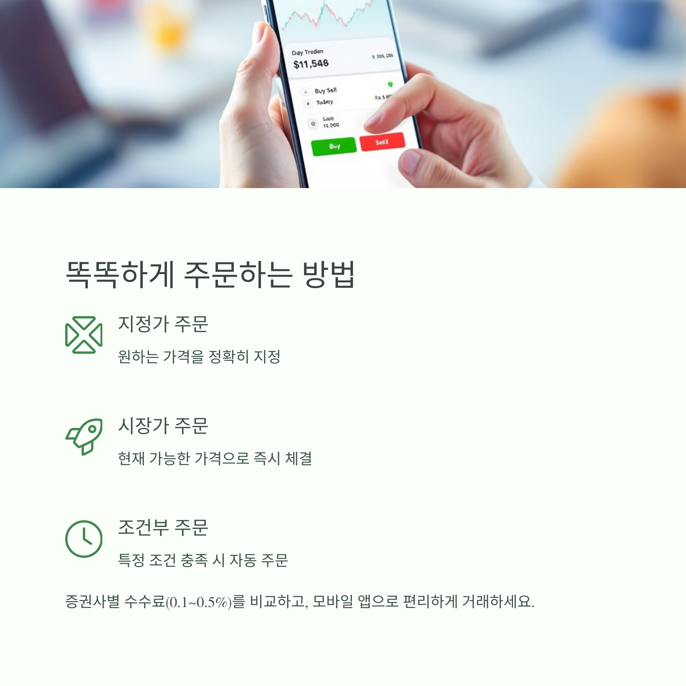 주식을 사는 걸 '매수', 파는 걸 '매도'라고 해요. 그런데 단순히 사고파는 게 전부가 아니에요. 주문 방식도 다양하거든요. 특히 '시장가'와 '지정가'는 꼭 알아두세요!