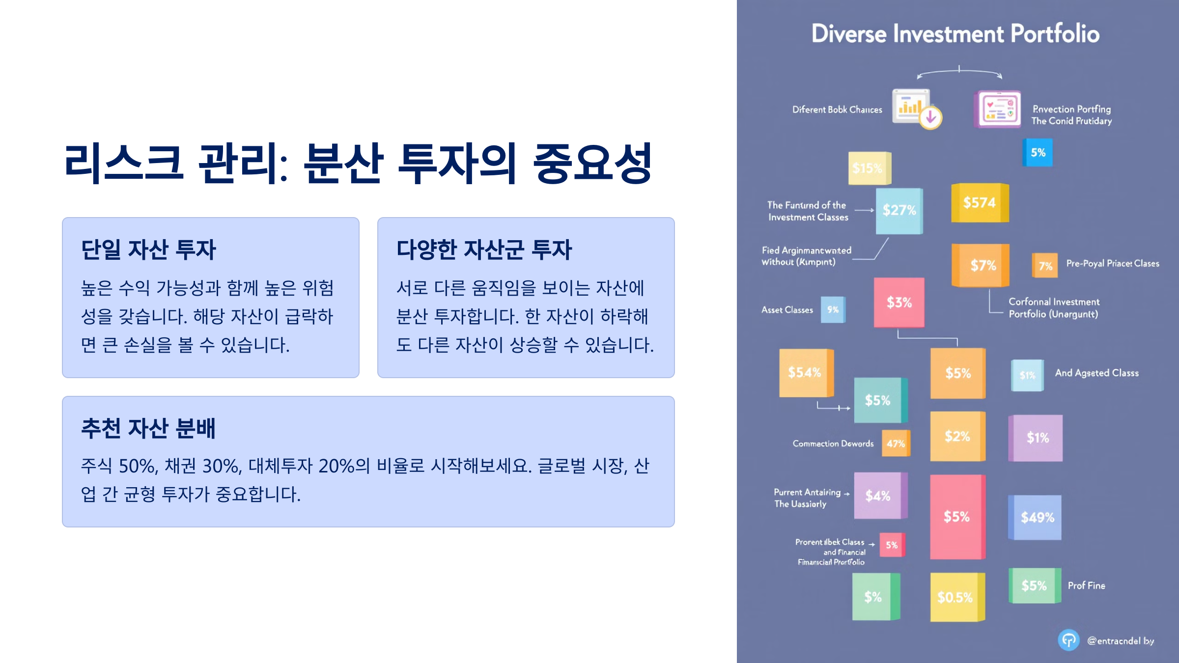 ‘계란을 한 바구니에 담지 말라’는 말, 다들 한 번쯤 들어보셨죠? 투자에서도 마찬가지예요. 특정 자산에 올인할 경우, 그 자산이 하락했을 때 전체 자산에 큰 타격을 입게 됩니다. 그래서 분산 투자가 중요하죠. 다양한 자산군에 나눠 투자함으로써, 개별 자산의 리스크를 상쇄시킬 수 있어요.
