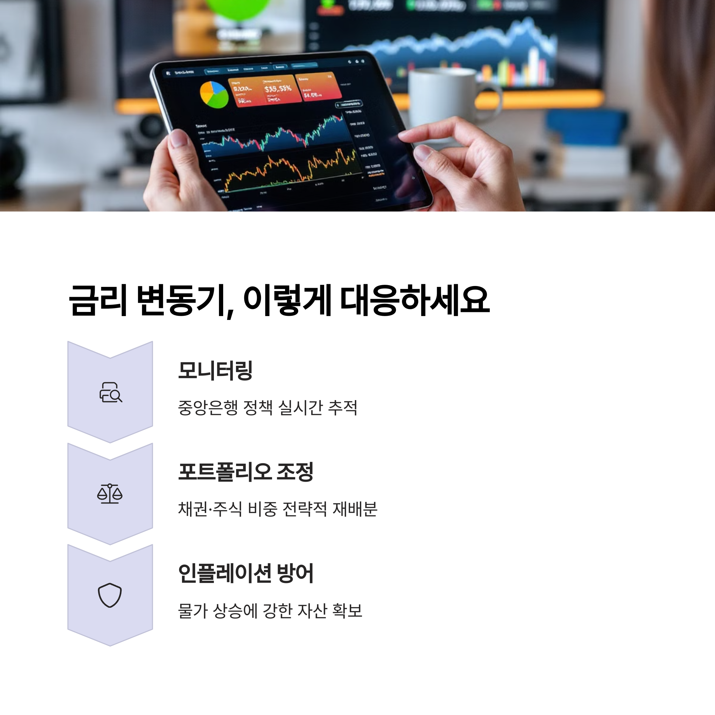 - 단기 예금/채권 먼저 → 추후 금리 반등 시 장기 자산 전환