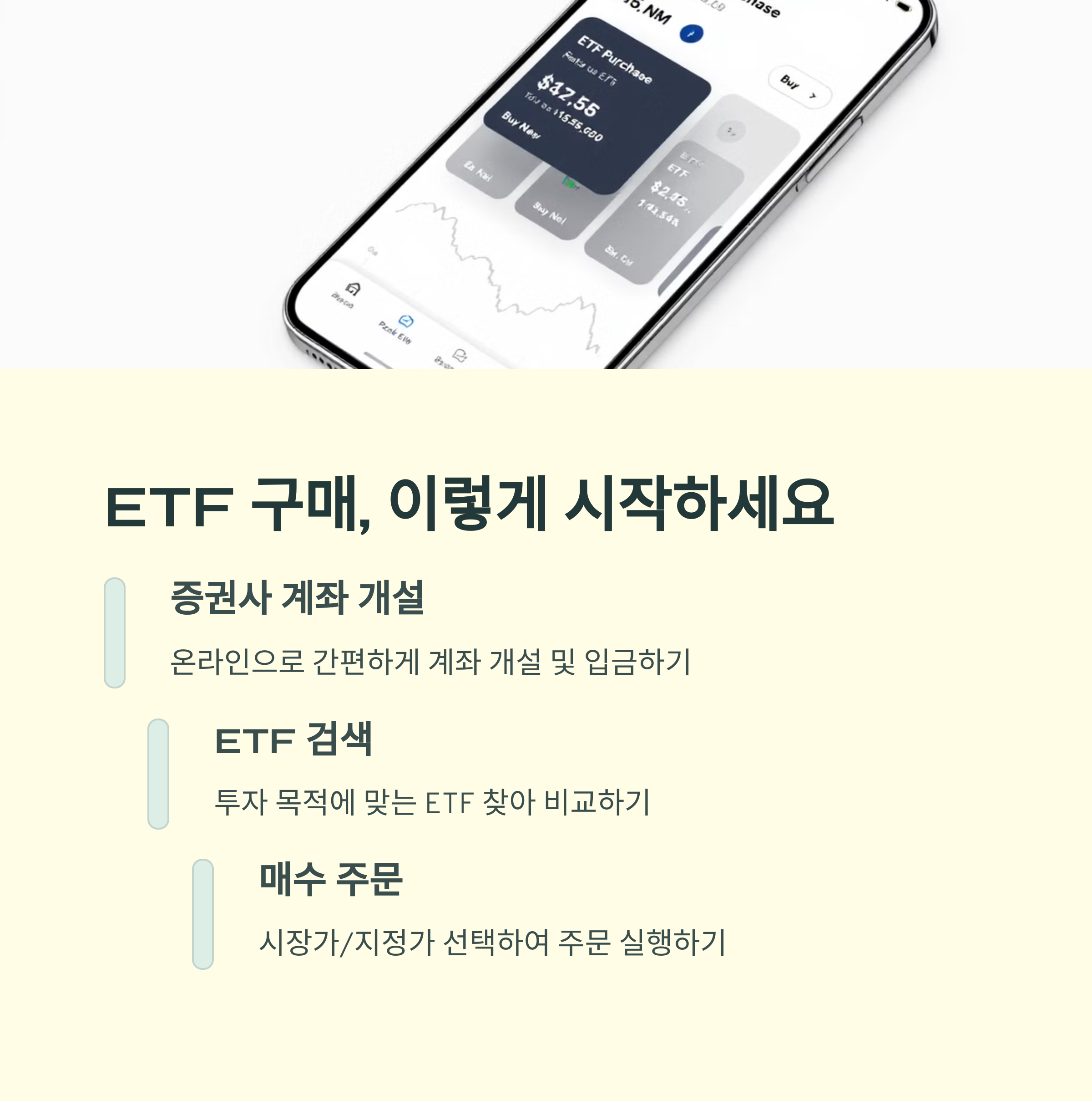 ETF는 주식처럼 증권사 앱(예: 키움, 미래에셋, 삼성증권 등)에서 간단히 매수할 수 있어요. 검색창에 ‘TIGER 2차전지’, ‘KODEX S&P500’처럼 ETF 이름을 입력하고, 원하는 수량과 가격을 입력한 뒤 매수 버튼을 누르면 끝이에요.