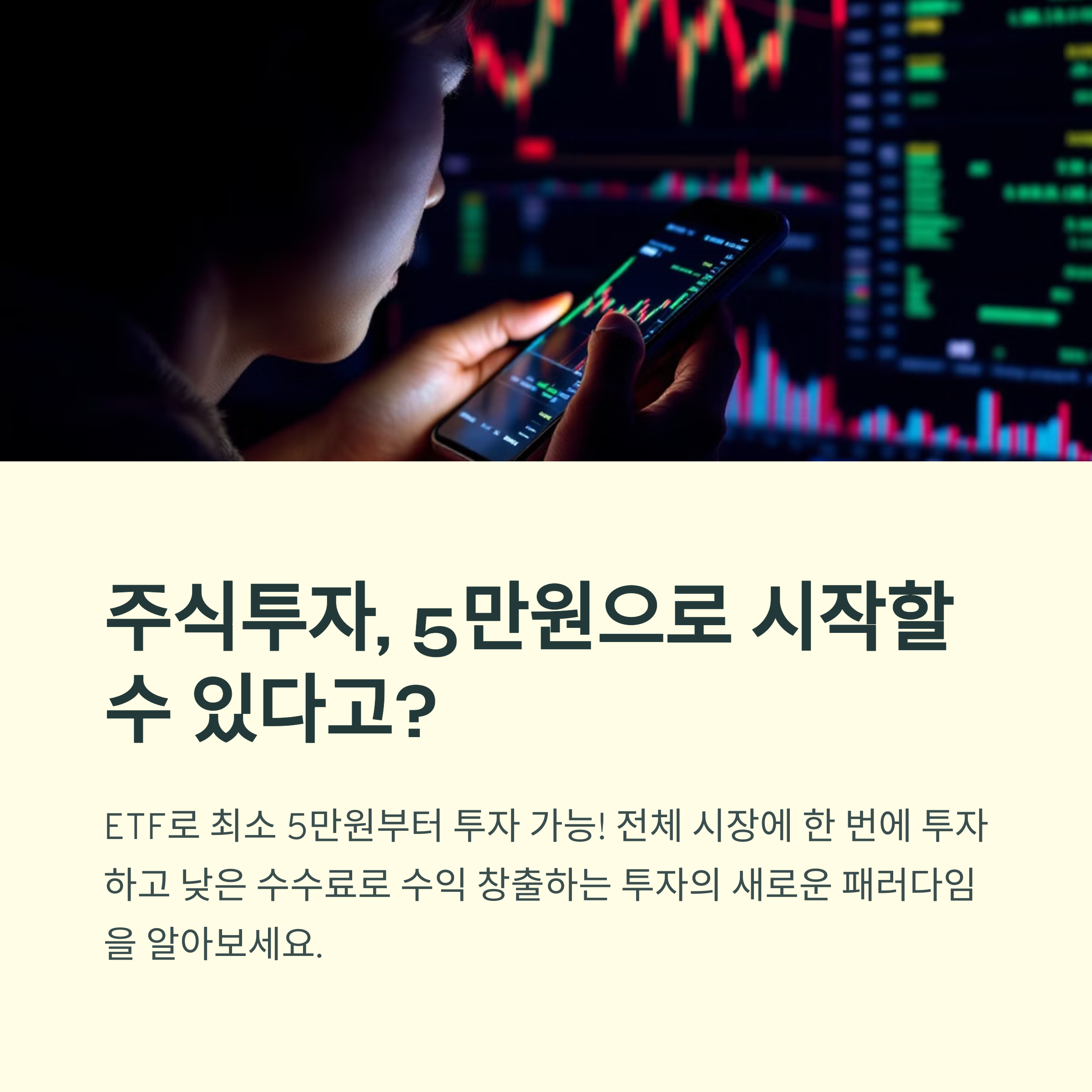 주식은 무섭고, 펀드는 복잡하신가요? ETF 하나로 간단하고 똑똑한 투자를 시작할 수 있습니다. 왕초보도 OK!